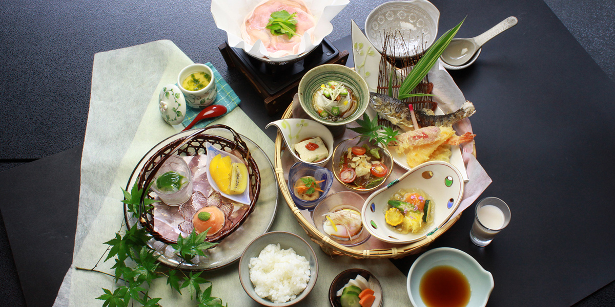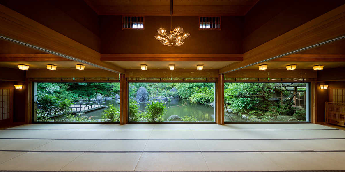 72张榻榻米的大厅可根据您的预订内容变身为单间或是宴会场。同时这里也是非住宿客的用餐地点,以及住宿客的早餐会场。